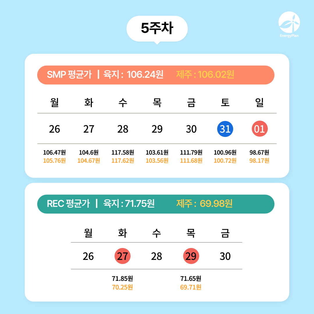 금주 SMP 및 REC 시장 흐름을 정리하여 공유드리고자 합니다.