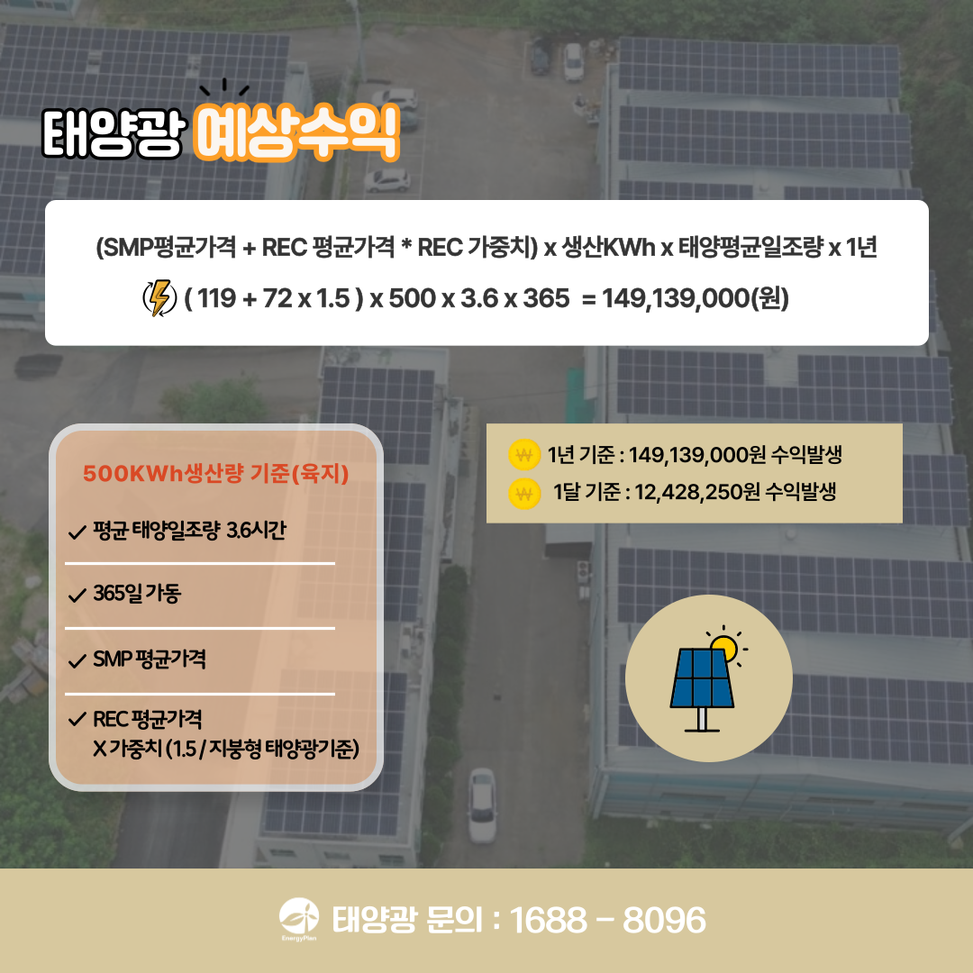 태양광 발전으로 연간 149,139,000원의 수익을 창출하실 수 있습니다.