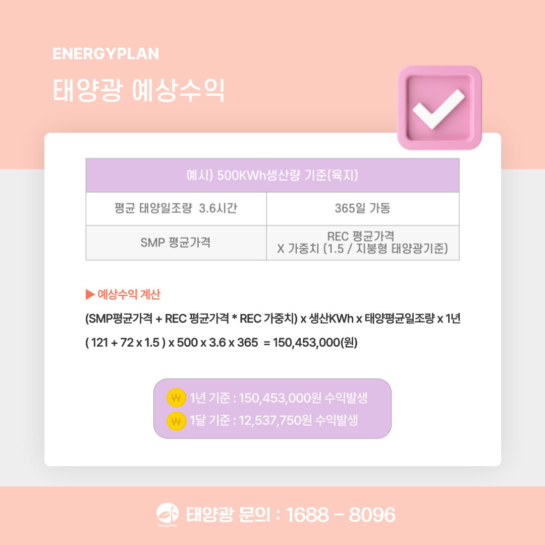 태양광 발전으로 연간 150,453,000원의 수익을 창출하실 수 있습니다.