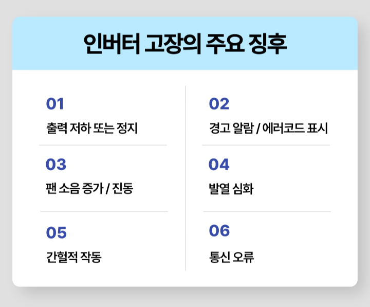 인버터는 대부분 갑작스럽게 멈추기보다는, 사전에 이상 신호를 보내는 경우가 많습니다.