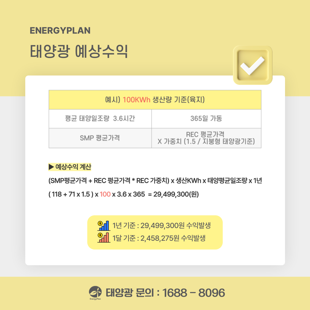 ※ 실제 수익은 지역, 일사량, 설비 효율, REC 가중치 등의 조건에 따라 달라질 수 있습니다.