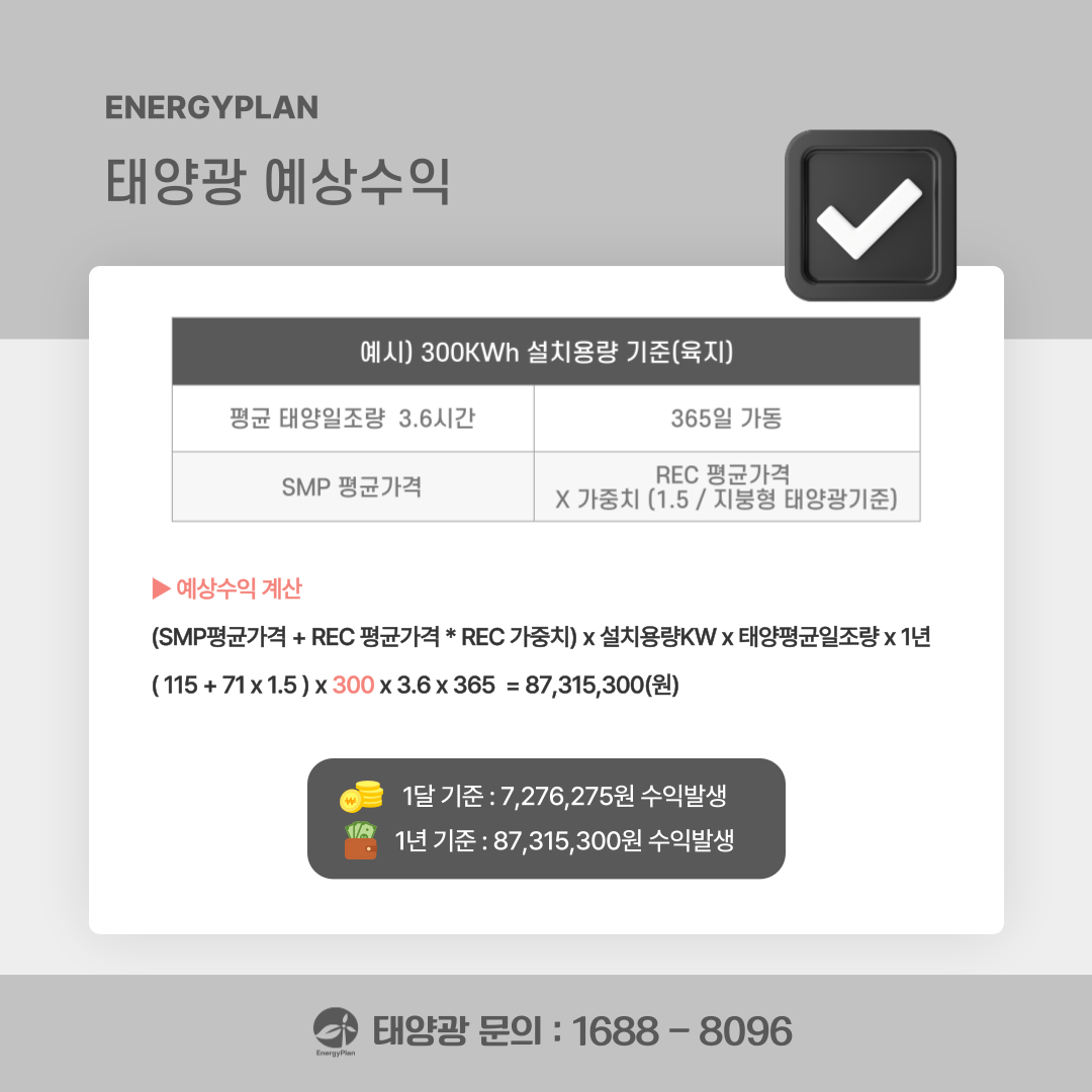 실제 수익은 발전소 설치 용량, 지역별 일사량, 계절별 발전 효율 등 다양한 요인에 따라 변동될 수 있습니다.