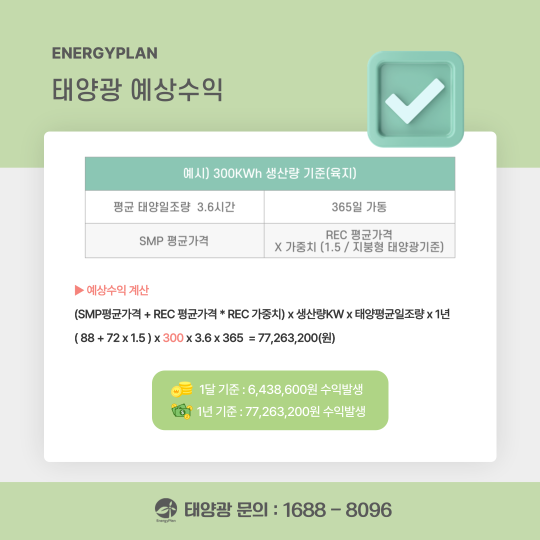 ※ SMP·REC 평균가 및 일조시간을 기준으로 산정한 예상 수익입니다.